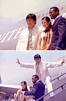 圖:成龍新作《尖峰時(shí)刻2》舉行首映式 2001年07月31日 15:55 ![]() 功夫巨星成龍最新完成的影片《尖峰時(shí)刻2》日前在洛杉磯直飛香港的飛機(jī)上進(jìn)行首映,這是近四十年來第一部在空中飛行過程中舉行首映式的影片。圖為成龍、章子怡、克里斯·塔克在舉行首映式的飛機(jī)上。
