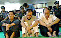 圖:中國(guó)首宗偽造二十元版人民幣案開庭審理 2001年08月03日 20:53 ![]() 中國(guó)首宗偽造二十元版人民幣案三日在廣東省汕尾市中級(jí)人民法院開庭審理,八名被告共印制九九年版二十元人民幣一千九百三十萬元,為中國(guó)首例。