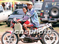 圖:泰國盛行騎摩托 2001年08月08日 14:29 ![]() 摩托車目前在泰國仍是人們的主要交通工具,在大街小巷,隨處可見市民騎著自己改裝的各式各樣的三輪摩托車帶著家人在街頭行駛。中新社記者 趙振清 攝
