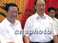 圖文:白克明任海南省委書記 杜青林另有任用 2001年08月16日 17:32 ![]() 白克明 ![]() 杜青林(資料圖片,中新社記者 張煒 攝) ![]() 八月十五日上午,中共海南省委召開干部大會。中共中央組織部副部長黃晴宜宣布:杜青林不再擔任海南省委書記職務,另有任用;任命白克明接任中共海南省委書記職務。中新社記者 關向東 攝 ![]() 八月十五日上午,中共海南省委召開干部大會。中共中央組織部副部長黃晴宜宣布:杜青林不再擔任海南省委書記職務,另有任用;任命白克明接任中共海南省委書記職務。在海南工作了九年多的杜青林與剛剛履新的白克明握手“交班”。中新社記者 關向東 攝