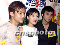 組圖:容祖兒為電影《我的野蠻同學(xué)》宣傳 2001年08月17日 22:38 ![]() 歌星容祖兒17日在香港為電影《我的野蠻同學(xué)》出席宣傳活動,并為有份演出的電影《我的野蠻同學(xué)》海報上簽名。中新社圖 鄧慶樂 攝 ![]() 歌星鍾兆康、容祖兒、馮德倫17日在香港為電影《我的野蠻同學(xué)》出席宣傳活動。中新社圖 鄧慶樂 攝