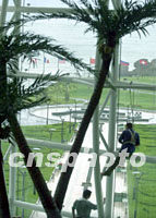 組圖:迎接APEC高官會(huì) 2001年08月19日 19:08 ![]() 憑窗對(duì)面黃海之濱的玻璃大廳是APEC高官會(huì)議八月選在大連的場(chǎng)所之一,工人們忙于準(zhǔn)備迎接,將廳內(nèi)擦拭得明亮潔凈。中新社記者 賈國(guó)榮 攝 ![]() 在大連金石灘黃金海岸,看海者們被這里的山色和白浪所吸引。APEC高官會(huì)議八月中旬首次在如此美景的海濱舉行。中新社記者 賈國(guó)榮 攝