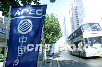 組圖:2001年APEC第三次高官會 2001年08月21日 18:31 ![]() 2001年APEC第三次高官會八月二十三日將在遼寧大連開幕,主會場香格里拉酒店的侍應(yīng)生佩帶APEC標(biāo)志迎接與會人員。中新社記者 滿會喬 攝 ![]() APEC2001年第三次高官會八月二十三日將在遼寧大連開幕,主會場香格里拉酒店外掛滿APEC字樣的旗子,APEC成為八月份大連最重要的主題。中新社記者 滿會喬 攝