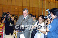 組圖:APEC中小企業(yè)工商論壇在上海閉幕 2001年08月30日 17:50 ![]() APEC中小企業(yè)工商論壇八月三十日在上海閉幕,圖為中訊集團(tuán)公司董事長(zhǎng)兼總裁毛杏春作總結(jié)報(bào)告。中新社記者 潘索菲 攝 ![]() APEC中小企業(yè)工商論壇八月三十日在上海閉幕,圖為與會(huì)的美國(guó)代表向記者介紹他參加論壇的成果。中新社記者 潘索菲 攝