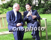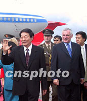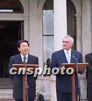 ![]() 正在愛爾蘭訪問的中國總理朱镕基,九月三日在下榻的國賓館與愛總理埃亨舉行會(huì)談后,共同會(huì)見記者并回答提問。中新社記者 孟慶雷 攝