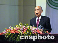 圖:霍英東華商大會(huì)敘海外子孫情 2001年09月17日 12:12 ![]() 全國(guó)政協(xié)副主席霍英東先生十七日在第六屆世界華商大會(huì)開幕式上做題為《炎黃華胄,海外子孫》的發(fā)言。中新社記者鄭萍萍攝 |