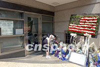圖:美國(guó)駐香港總領(lǐng)事館門(mén)前獻(xiàn)花人不斷 2001年09月17日 17:40 ![]() 美國(guó)紐約世貿(mào)中心受攻擊后,每天都有人到美國(guó)駐香港總領(lǐng)事館獻(xiàn)花悼念遇難者。9月17日美國(guó)駐香港總領(lǐng)事館再度關(guān)閉,但依然不時(shí)有人在緊閉的大門(mén)外獻(xiàn)上寄托哀思的鮮花。中新社傳真 任晨鳴 攝 |