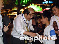 圖:貝聿愷為南京小市民簽名留念 2001年09月18日 14:10 ![]() 出席華商會的美國美中經(jīng)貿(mào)促進會會長貝聿愷十七日晚在南京著名景區(qū)秦淮河畔游覽時,為熱情的南京小市民簽名。中新社記者 鄭萍萍 攝 |