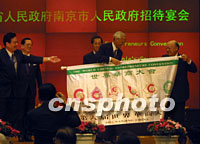 第六屆世界華商大會閉幕 會旗遞交馬來西亞 2001年09月19日 21:39 ![]() 全國工商聯(lián)主席經(jīng)叔平十九日晚在第六屆世界華商大會閉幕式上致閉幕辭。中新社記者 史利 攝 ![]() 第六屆世界華商大會十九日晚在南京市圓滿閉幕,本屆大會組委會主席經(jīng)叔平將大會會旗移交給下屆主辦者馬來西亞中華工商聯(lián)合會會長林源德(右)。中新社記者 史利 攝