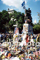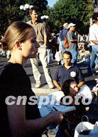 組圖:曼哈頓聯(lián)合廣場(chǎng)成公眾悼念場(chǎng)所 2001年09月22日 13:38 ![]() 曼哈頓下城,離世貿(mào)中心不遠(yuǎn)處的聯(lián)合廣場(chǎng),“九一一”以來(lái)成為紐約客悼念死難者的場(chǎng)所。這里遍地是花束、燭臺(tái)、國(guó)旗和失蹤者的像片,整日人來(lái)人往,昔日各種街頭露天表演不復(fù)見。中新社記者 郭健 攝 ![]() 自發(fā)悼念“九一一”遇難者是眼下紐約的特殊景觀。這位女畫家正在作現(xiàn)場(chǎng)速寫。中新社記者 郭健 攝