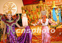 組圖:"內蒙古時裝展"中秋國慶期間在港舉行 2001年10月04日 09:29 ![]() 內蒙古民族時裝表演隊,中秋國慶期間在香港多個大型購物商場表演,巡回展示內蒙古少數民族多姿多彩的服飾文化。中新社圖 洪少葵 攝 ![]() 香港大型購物商場“青衣城”,中秋國慶假期舉辦“蒙古民族時裝表演”,瑰麗多彩的蒙古民族服飾,令顧客耳目一新。中新社圖 洪少葵 攝