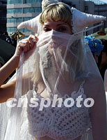 ![]() 來自俄羅斯的模特,日前在青島舉行的2001中國青島時裝周上進(jìn)行服裝展示。中新社記者 錢興強(qiáng) 攝