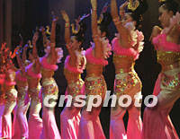 圖:西安為游人演出大型唐代舞蹈 2001年10月06日 10:39 ![]() 西安長(zhǎng)樂(lè)宮劇院在國(guó)慶假期里為游客演出《霓裳羽衣舞》。傳說(shuō)此舞是楊玉環(huán)按玄宗皇帝旨意編排的宮廷舞蹈,以仙女在天宮中的漫舞輕歌來(lái)頌揚(yáng)大唐盛世國(guó)泰民安。中新社記者 宋吉河 攝 |