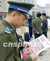 中新社北京十月八日電 (記者王玲)這個清晨對北京市民來說有些不尋常。國慶長假結(jié)束后的第一天,街上重新一片匆忙。當(dāng)昨夜國足勝利的狂歡氣氛漸漸散去之后,凌晨時分在阿富汗打響的一場戰(zhàn)爭聚焦了北京人關(guān)注的目光。 清晨,一些早起的市民首先從電視和收音機(jī)中得知了這一訊息,晨練的人們停下來,專注地收聽有關(guān)這場戰(zhàn)爭的報道;而在多數(shù)家庭里,人們一邊吃早餐一邊從電視早間新聞中關(guān)注阿富汗的情況。 記者與一位四十歲左右的先生聊了起來。他認(rèn)為戰(zhàn)爭只會引起世界經(jīng)濟(jì)的動蕩不安,而中國的發(fā)展需要和平穩(wěn)定的外部環(huán)境。 三十多歲的黃先生是凌晨一時左右從電視新聞中得知這一消息的,他認(rèn)為戰(zhàn)爭會惡化亞洲的安全秩序,對中國乃至整個世界的安全、經(jīng)濟(jì)等都會造成沖擊。 記者留意了一下北京街頭上出售的報紙對此事的報道。大部分報紙的頭版頭條幾乎在顯著位置全是中國足球隊贏得世界杯決賽權(quán)的巨幅照片。而各大網(wǎng)站則報道了美國對阿采取軍事行動的新聞。 |