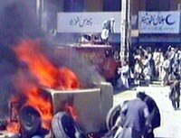 圖:巴反美示威演變成騷亂 2001年10月09日 10:36 ![]() 美英八日開始對(duì)阿富汗進(jìn)行軍事打擊后,巴基斯坦爆發(fā)了大規(guī)模的示威游行,并演變?yōu)轵}亂。憤怒的民眾襲擊了聯(lián)合國兒童基金會(huì)和聯(lián)合國難民署駐當(dāng)?shù)氐慕ㄖ铩?/p> |