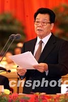 ![]() 辛亥革命九十周年紀念大會九日在北京人民大會堂舉行,共青團中央第一書記周強在會上發(fā)言。中新社記者 毛建軍 攝 ![]() 辛亥革命九十周年紀念大會九日在北京人民大會堂舉行,中共中央政治局常委、全國政協(xié)主席李瑞環(huán)主持會議。中新社記者 毛建軍 攝