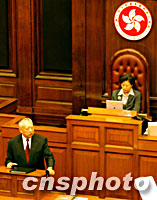 香港特首董建華發(fā)表任內(nèi)最后一份施政報(bào)告 2001年10月10日 17:36 ![]() 香港特區(qū)行政長官董建華,10月10日在香港立法會(huì)發(fā)表2001年施政報(bào)告。中新社記者 任晨鳴 攝