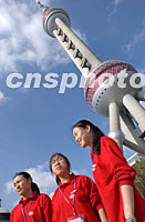 圖:上海APEC大學生志愿者 2001年10月13日 11:33 ![]() 兩千七百名大學生為上海APEC會議當志愿者,13日會議召開前夕,其中幾名學生在他們服務的新聞中心前留下難忘紀念。中新社記者 王瑤 攝 |