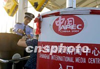 圖:APEC會議新聞中心出入關口 2001年10月13日 19:27 ![]() 本屆APEC會議的新聞發(fā)布廳設置在上海東方明珠大廈,目前出入大廈的人員都必須經(jīng)過門口警衛(wèi)的嚴格證件檢查。中新社圖 劉殊瑾 攝 |
