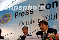 圖:秦曉、霍建國認(rèn)為APEC作用重要 2001年10月15日 22:06 ![]() APEC工商咨詢理事會(huì)主席秦曉(左)、秘書長霍建國十五日在上海APEC新聞發(fā)布會(huì)上表示,APEC對(duì)當(dāng)前世界前沿問題進(jìn)行探討并達(dá)成共識(shí)具有重要作用。中新社記者 潘索菲 攝 |
