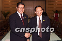 圖:唐家璇會見泰國外交部長 2001年10月16日 20:08 ![]() 中國外交部長唐家璇十六日在上海國際會議中心會見前來參加亞太經(jīng)合組織(APEC)會議的泰國外交部長素拉革·沙提拉泰。中新社記者 毛建軍 攝 |