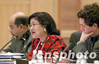 圖:拉菲達(dá)在亞太經(jīng)合組織部長級(jí)會(huì)議上發(fā)言 2001年10月17日 18:45 ![]() 10月17日,2001年亞太經(jīng)合組織(APEC)部長級(jí)會(huì)議在上海國際會(huì)議中心開幕。這是馬來西亞貿(mào)工部長拉菲達(dá)·阿齊茲在會(huì)上發(fā)言。中新社圖 |