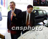 圖:通用汽車董事長史密斯比APEC其他代表多一份自豪 2001年10月17日 18:46 ![]() 上海APEC期間,有八百輛別克汽車作為禮賓及會務(wù)用車,為此美國通用汽車公司董事長史密斯比其他代表多一份自豪。圖為十七日抵達上海的史密斯在親臨上海通用汽車公司時說,當年他第一個在上海首輛別克汽車上簽名。中新社記者 潘索菲 攝 |