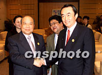圖:石廣生會見日本經(jīng)濟產(chǎn)業(yè)大臣 2001年10月17日 18:56 ![]() 中國對外經(jīng)濟貿(mào)易合作部長石廣生十七日在上海國際會議中心會見前來參加2001年亞太經(jīng)合組織(APEC)會議的日本經(jīng)濟產(chǎn)業(yè)大臣平沼赳夫。中新社記者 毛建軍 攝 |