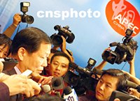 APEC快遞:李榮融說(shuō),中國(guó)經(jīng)濟(jì)繼續(xù)快速增長(zhǎng) 2001年10月17日 22:48 ![]() 中外記者十月十七日在上海圍住中國(guó)國(guó)家經(jīng)貿(mào)委主任李榮融,APEC國(guó)際新聞中心邀請(qǐng)他介紹中國(guó)經(jīng)濟(jì)與國(guó)企改革以及新近的美國(guó)考察之行,引起媒體的關(guān)注。中新社記者 賈國(guó)榮 攝