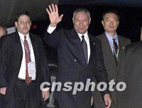 圖:美國國務(wù)卿鮑威爾抵達(dá)上海 2001年10月18日 10:14 ![]() 10月17日,美國國務(wù)卿科林·盧瑟·鮑威爾乘機(jī)抵達(dá)上海浦東國際機(jī)場。中新社圖 |