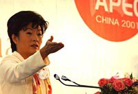 圖:章啟月談保安 2001年10月18日 10:25 ![]() APEC籌委會秘書處發(fā)言人章啟月十八日在上海國際新聞中心的早晨發(fā)布會上,多次強調(diào)中方對各國首腦的保安早有可靠措施。據(jù)悉美國總統(tǒng)布什今日飛抵上海。中新社記者 賈國榮 攝 |