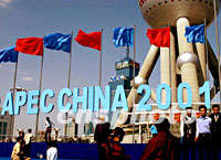 圖:浦東APEC與民同樂 2001年10月18日 12:54 ![]() 上海浦東十八日新豎起巨幅APEC標(biāo)語和藍(lán)色大臺,休假的市民們紛紛來此感受盛會的歡樂。中新社記者 賈國榮 攝 |