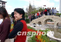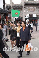 ![]() 出席APEC雙部長會(huì)議的部長夫人們十八日到千年水鄉(xiāng)古鎮(zhèn)朱家角參觀游覽,中國臺北“經(jīng)濟(jì)部長”夫人葉美吟對當(dāng)?shù)氐牟菥幭X蟈愛不釋手。中新社記者 王瑤 攝 ![]() 出席APEC雙部長會(huì)議的部長夫人們十八日到千年水鄉(xiāng)古鎮(zhèn)朱家角游覽,圖為香港工商局長周德熙夫人黃英琦(右)參觀古牌樓。中新社記者 王瑤 攝