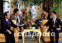 圖:日本經(jīng)濟(jì)產(chǎn)業(yè)大臣平沼赳夫贊揚(yáng)中國(guó)APEC 2001年10月19日 12:03 ![]() 中國(guó)國(guó)家經(jīng)貿(mào)委主任李榮融(右)十九日在上海會(huì)見(jiàn)日本經(jīng)濟(jì)產(chǎn)業(yè)大臣平沼赳夫(左),平沼赳夫先生對(duì)此次APEC表示贊賞。中新社記者 潘索菲 攝 |