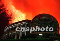 ![]() 上海APEC峰會之夜焰火沖天,亞太地區(qū)首腦和嘉賓聚集國際會議中心大飽眼福。 中新社記者 賈國榮 攝 ![]() 上海黃浦江上二十日夜龍舟噴射煙火,慶賀APEC峰火隆重開幕。中新社記者 賈國榮 攝