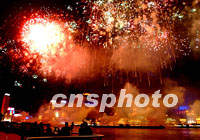 組圖:浦江煙花賀峰會 2001年10月20日 22:29 ![]() 二十日晚,色彩繽紛的煙花映紅上海浦江兩岸,祝賀APEC高峰會舉行。中新社記者 毛建軍 攝 ![]() 大型景觀焰火表演“今宵如此美麗”于10月20日晚上9時在浦江之濱亮相,五彩繽紛的焰火吸引APEC會議的攝影記者在東方明珠塔下不停地按下快門。中新社圖 肖方 攝
