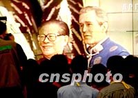 組圖:布什穿中式服裝亮相APEC峰會 2001年10月21日 11:31 ![]() 美國總統(tǒng)布什身穿藍(lán)色中式對襟服裝走出特制專用轎車,出席二十一日的上海APEC峰會。中外記者聚集在現(xiàn)場直播的電視屏幕前,進(jìn)行同步報道。中新社記者 賈國榮 攝 ![]() 十月二十一日清晨,中外記者聚集在上海國際新聞中心現(xiàn)場直播的電視屏幕前,關(guān)注中國國家主席江澤民身著紅色中式對襟服,迎接身穿藍(lán)色中式對襟服的美國總統(tǒng)布什,進(jìn)行出席上海APEC峰會。中新社記者 賈國榮 攝