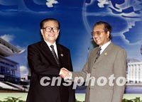 圖:江澤民迎接馬來西亞總理 2001年10月21日 11:36 ![]() 10月20日,中國國家主席江澤民在上海國際會(huì)議中心迎接馬來西亞總理馬哈蒂爾。中新社圖 |