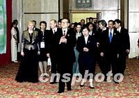 圖:江澤民夫婦舉行歡迎晚宴 2001年10月21日 11:37 ![]() 10月20日,中國(guó)國(guó)家主席江澤民和夫人王冶坪在上海國(guó)際會(huì)議中心為參加2001年亞太經(jīng)合組織(APEC)領(lǐng)導(dǎo)人非正式會(huì)議的領(lǐng)導(dǎo)人和配偶舉行歡迎晚宴。這是江澤民主席夫婦和貴賓步入宴會(huì)大廳。中新社圖 |