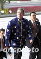 組圖:APEC成員領(lǐng)導(dǎo)人身著“中式裝” 2001年10月21日 12:01 ![]() 10月21日上午,出席2001年亞太經(jīng)合組織領(lǐng)導(dǎo)人非正式會(huì)議的美國(guó)總統(tǒng)布什抵達(dá)上?萍拣^。中新社圖 ![]() 10月21日上午,出席2001年亞太經(jīng)合組織領(lǐng)導(dǎo)人非正式會(huì)議的俄羅總統(tǒng)普京抵達(dá)上海科技館。中新社圖