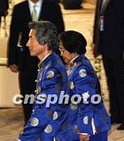![]() 上海APEC領(lǐng)導(dǎo)人峰會(huì)閉幕,亞太經(jīng)合組織第九次領(lǐng)導(dǎo)人非正式會(huì)議二十一日在上海圓滿閉幕。澳大利亞總理霍華德、智利總統(tǒng)拉戈斯、香港特首董建華等身穿唐裝步出會(huì)場(chǎng)。中新社記者 王瑤 攝