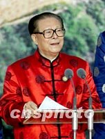 組圖:江澤民宣讀《領(lǐng)導(dǎo)人宣言》 2001年10月22日 09:54 ![]() 10月21日,國家主席江澤民在上?萍拣^宣讀亞太經(jīng)合組織第九次領(lǐng)導(dǎo)人非正式會議的《領(lǐng)導(dǎo)人宣言》。中新社圖 ![]() 10月21日,國家主席江澤民在上海科技館宣讀亞太經(jīng)合組織第九次領(lǐng)導(dǎo)人非正式會議的《領(lǐng)導(dǎo)人宣言》。中新社圖