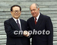 江澤民說(shuō),打擊恐怖主義是一項(xiàng)長(zhǎng)期艱巨任務(wù) 2001年10月23日 21:04 ![]() 國(guó)家主席江澤民二十三日在北京歡迎來(lái)訪的智利總統(tǒng)拉戈斯。中新社記者 滿會(huì)喬 攝