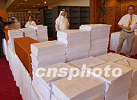 組圖:WTO部長會議開幕 多哈做好充分準備 2001年11月10日 17:08 ![]() 第四屆WTO部長會議在卡塔爾首都多哈開幕, 大會組委會為參加會議的各國官員準備各種會議資料。中新社記者 錢興強 攝 ![]() 第四屆WTO部長會議在卡塔爾首都多哈開幕,為確保大會安全,身穿阿拉伯民族服飾的保衛(wèi)人員加強安全保衛(wèi)措施。中新社記者 錢興強 攝