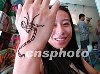 圖:京城美女鐘情毒蝎體繪 2001年11月11日 10:52 ![]() 一位北京小姐周末到尚吉體繪店請人在她手背繪上毒蝎圖案,據(jù)店員介紹這種毒蝎標(biāo)志在京城時尚美女中頗為流行。中新社圖 陳峰 攝 |