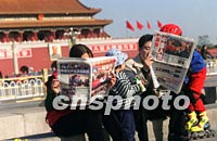 圖文:新生活新開始 北京市民眼中的WTO 2001年11月11日 21:14 ![]() 十一日是中國入世的第一天。在天安門廣場上游玩的一家人仔細(xì)閱讀當(dāng)日報(bào)紙關(guān)于WTO的相關(guān)新聞。中新社記者 史利 攝 ![]() 十日晚,北京火車站站前廣場電視大屏幕前,媒體記者和市民一起等候中國入世新聞。中新社圖 張勤 攝