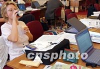 圖:各國(guó)記者關(guān)注中國(guó)入世簽字儀式 2001年11月12日 11:18 ![]() 第四屆WTO部長(zhǎng)會(huì)議十一晚舉行中國(guó)入世簽字儀式和通過(guò)臺(tái)灣加入世貿(mào)組織時(shí),各國(guó)記者在新聞中心緊張工作。圖為一名女記者邊用餐邊寫稿。中新社記者 錢興強(qiáng) 攝 |