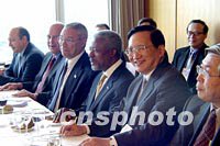 圖文:唐家璇主張,堅(jiān)決打擊“東突”恐怖勢(shì)力 2001年11月13日 10:06 ![]() 美東時(shí)間十二日中午,聯(lián)合國秘書長(zhǎng)安南在紐約聯(lián)合國總部宴請(qǐng)安理會(huì)五個(gè)常任理事國外長(zhǎng)。中國外長(zhǎng)唐家璇、美國國務(wù)卿鮑威爾等出席。中新社記者 陳建 攝