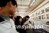 圖:入世后外語(yǔ)培訓(xùn)學(xué)校日漸火爆 2001年11月16日 16:27 ![]() 以出國(guó)留學(xué)人員外語(yǔ)培訓(xùn)聞名的北京某英語(yǔ)學(xué)校十七日如往常一樣人潮如涌,有些兩月后才開(kāi)課的班因人滿為患而暫停報(bào)名。該?谔(hào)是“挑戰(zhàn)極限,人生終將輝煌”,而入世后的中國(guó)也需要大批掌握世界領(lǐng)先技能的人才。中新社圖 劉殊瑾 攝 |