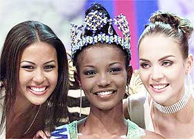 圖文:"黑姑娘"首次摘得"世界小姐"桂冠 2001年11月17日 16:11 ![]() 冠軍艾芭妮(中)、亞軍澤雷達(dá)(左)和季軍朱麗特(右)。(美聯(lián)社圖) 中新網(wǎng)香港11月17日消息:18歲的尼日利亞小姐艾芭妮·達(dá)雷戈(Agbani Darego)昨天榮登2001世界小姐寶座,從而成為第一位獲得“世界小姐”桂冠的黑人非洲小姐,她也是這一競(jìng)選活動(dòng)的第51位獲勝者。 93位入選佳麗昨晚齊聚南非太陽(yáng)城競(jìng)爭(zhēng)2001年“世界小姐”,艾芭妮最終從中脫穎而出。 世界小姐艾芭妮在賽前對(duì)路透社記者說(shuō),“黑人是美麗的!彼恢眽(mèng)想成為一名計(jì)算機(jī)科學(xué)家。 阿魯巴小姐澤雷達(dá)(Zerelda Lee)獲得亞軍,蘇格蘭小姐朱麗特·簡(jiǎn)·霍恩(Juliet-Jane Horne)獲得季軍。 據(jù)悉,在近半個(gè)多世紀(jì)以來(lái),只有三位獲勝者來(lái)自非洲,而其中兩位是來(lái)自南非的白種人,她們分別在1958年和1974年榮獲世界小姐,第三位是1954年,來(lái)自阿拉伯國(guó)家的埃及小姐。 本屆的“世界小姐”做了一些大膽的改革,其中一項(xiàng)措施就是不再公布佳麗們的三圍數(shù)字。發(fā)起人摩里夫人表示,“比賽除了要評(píng)判參賽者的容貌與身材外,更重要的一點(diǎn)是,要對(duì)她們的學(xué)識(shí)進(jìn)行打分,僅有容貌而無(wú)內(nèi)涵的花瓶,今后將沒有資格成為‘世界小姐’,只有綜合得分最高者,才是真正的‘世界小姐’! |